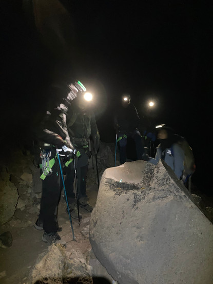 Empezamos el ascenso a las 12 de la noche con un paso bastante constante a diferencia de la vez anterior en donde subimos a un paso veloz. En esta ocasión Bosco lideraba el grupo y como cabeza de expedición no quería que el grupo se repartiera en partes por esto mantuvo un paso relativamente fácil y lento para que los menos experimentados del grupo pudieran aguantar. El ascenso del campamento hasta la base del glaciar fue muy bueno por el paso lento y constante. Llegamos a la base del glaciar sin sentir un cansancio acumulado que convirtiera al resto de la expedición en un reto difícil de cumplir.