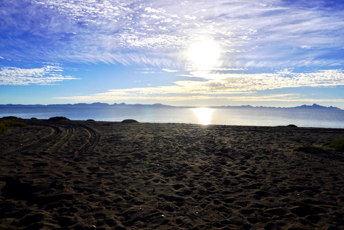 Despertamos para ver uno de los amaneceres más increíbles que he visto en la playa El Tecolote y tomamos camino hacie el norte, camino hacia Loreto. Acampamos en la playa La Salinita nosotros solos